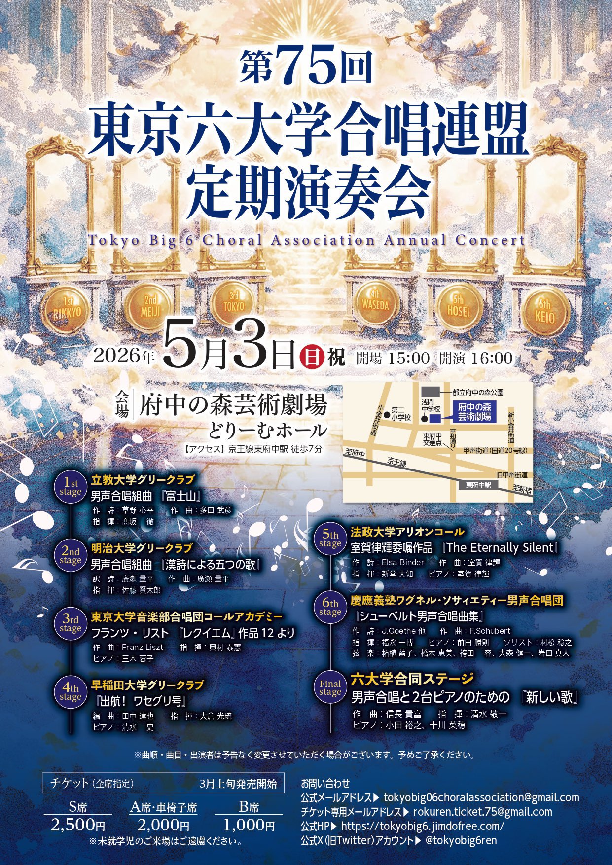 S席 2,500円 指定席 A席 2,000円 指定席 B席 1,000円 指定席 - 曲目・詳細